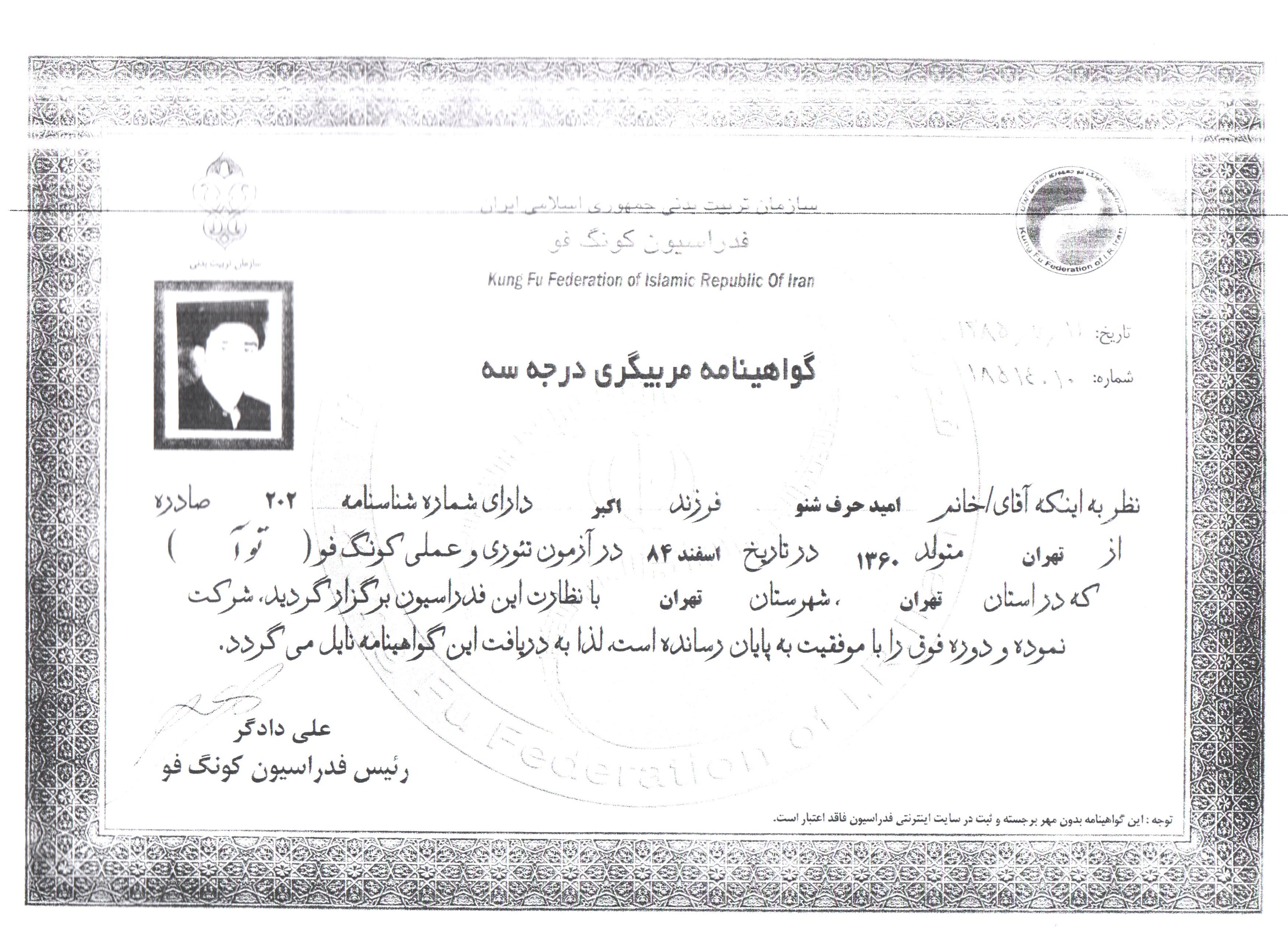 مدارک و گواهینامه استادان باشگاه