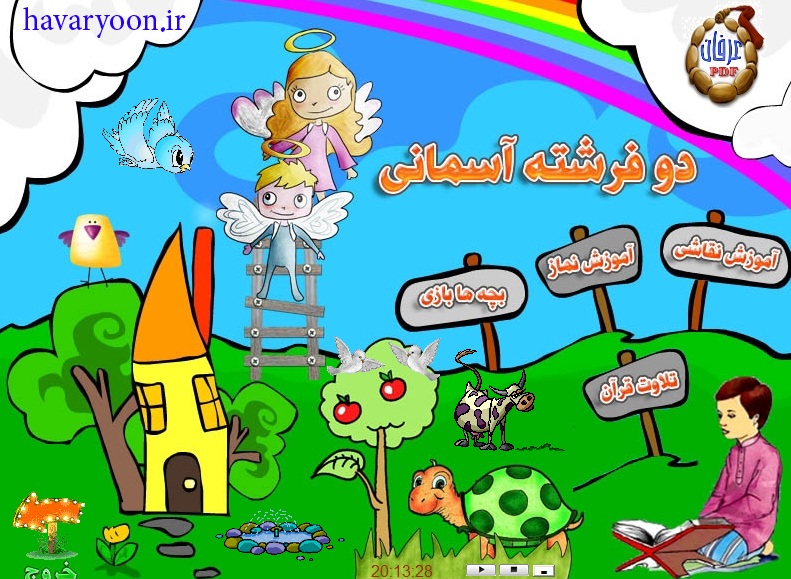 نرم افزار آموزشی دو فرشته آسمانی برای آموزش قرآن ، نماز ، وضو ، تیمم ، بازی و نقاشی به کودکان به بهترین و ساده ترین روش و به زبان فارسی ساخته و منتشر شده است. شما توسط این نرم افزار می توانید یک سرگرمی مفید برای کودکانتان تهیه کنید. نرم افزار بسیار زیبا و کاربردی دو فرشته آسمانی نیازی به نصب ندارد و بصورت یک فایل اجرایی می باشد.